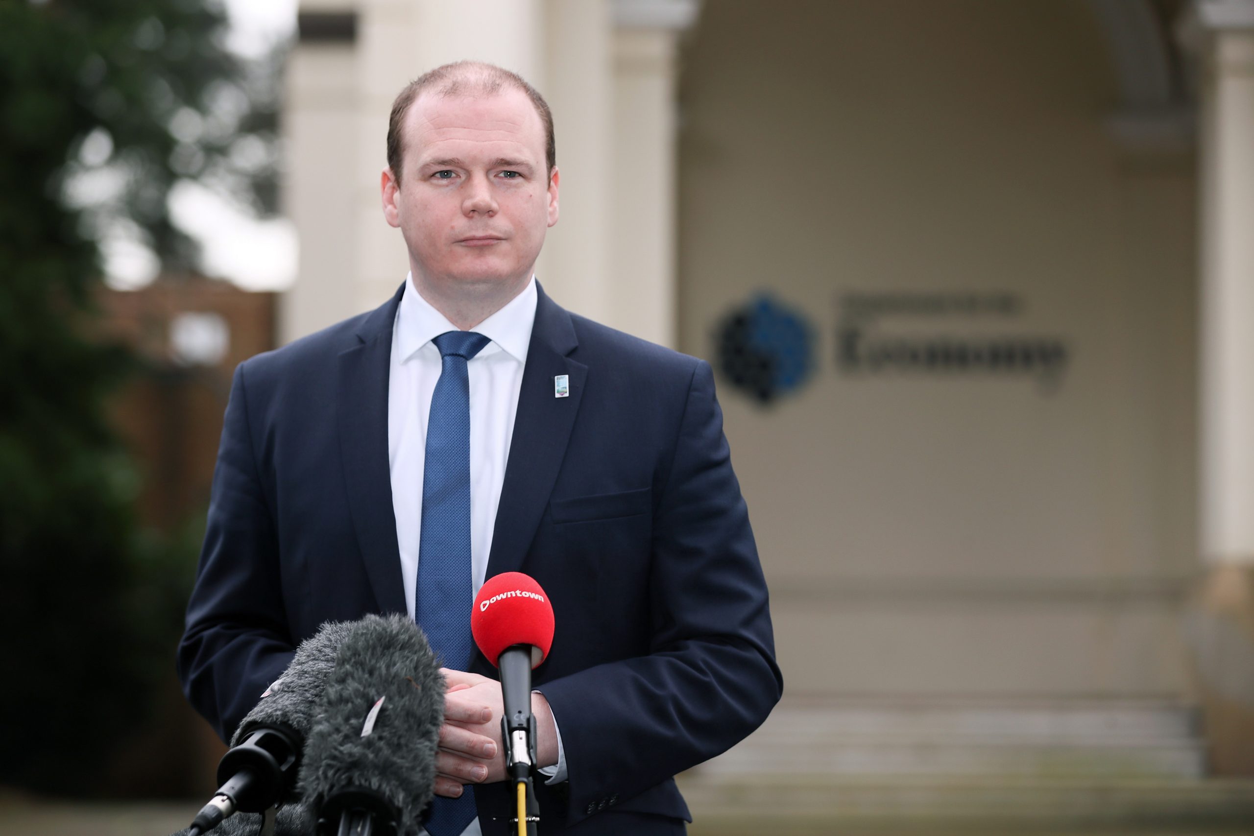 Minister Gordon Lyons speaking to the media. (Credits: ITVX)